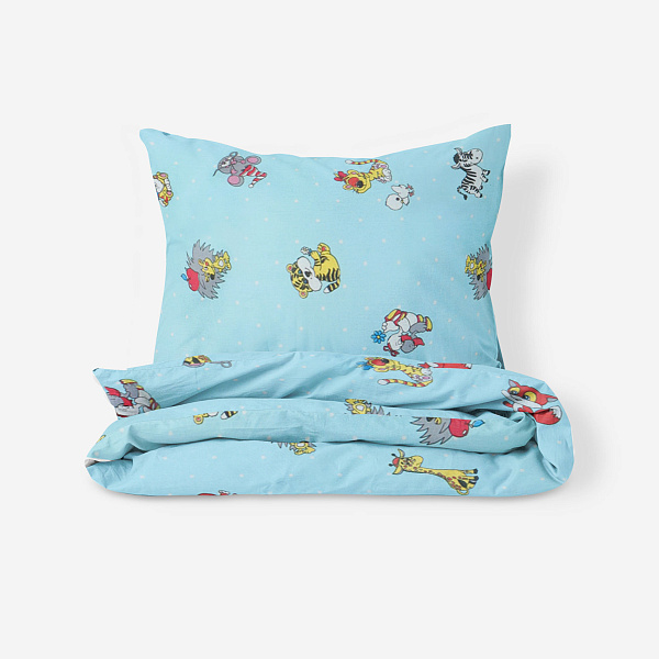 «Малыши» – это комплект постельного белья для детей из натуральной хлопчатобумажной ткани бязь. Серия «Зоопарк» выполнена в ярком голубом цвете с красочными рисунками в виде животных. Для окрашивания были использованы безопасные и прочные красители. Это значит, что белье не потеряет цвет даже после стирки.