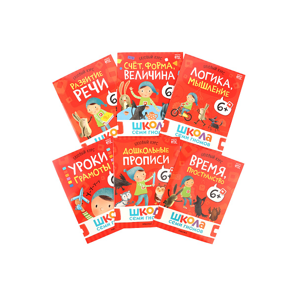 В течение обучения малыша сопровождает гном Кубик в оформленных в ярком красном оттенке тетрадях.
