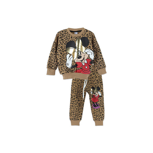 Комплект толстовка и брюки принт леопардовый с Минни Маус коричневый