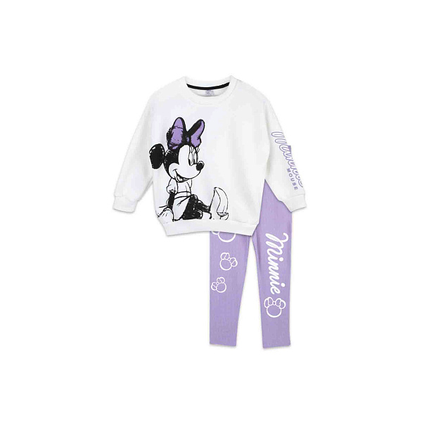 Комплект толстовка и брюки принт Минни Маус бело-сиреневый