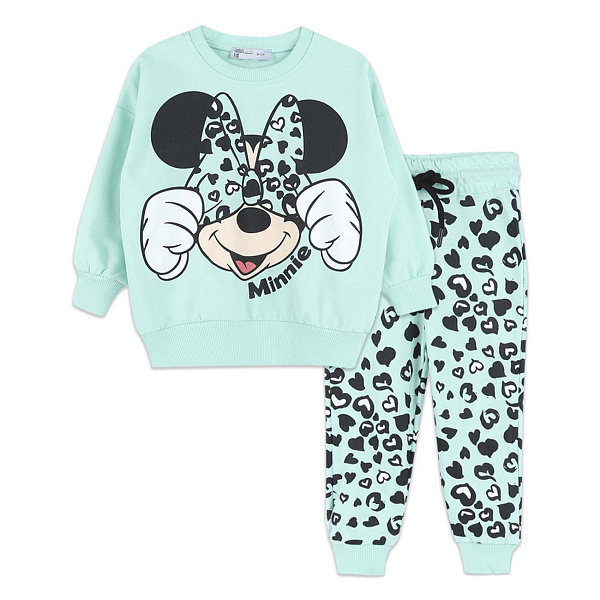 Комплект толстовка и брюки принт Минни Маус зеленый