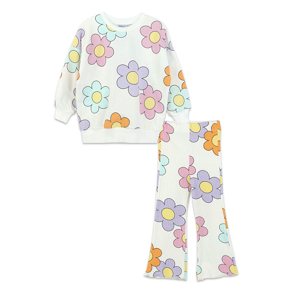 Комплект толстовка и брюки с крупными яркими цветами белый