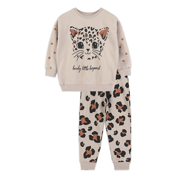 Комплект толстовка и брюки с надписью lovely little leopard бежевый