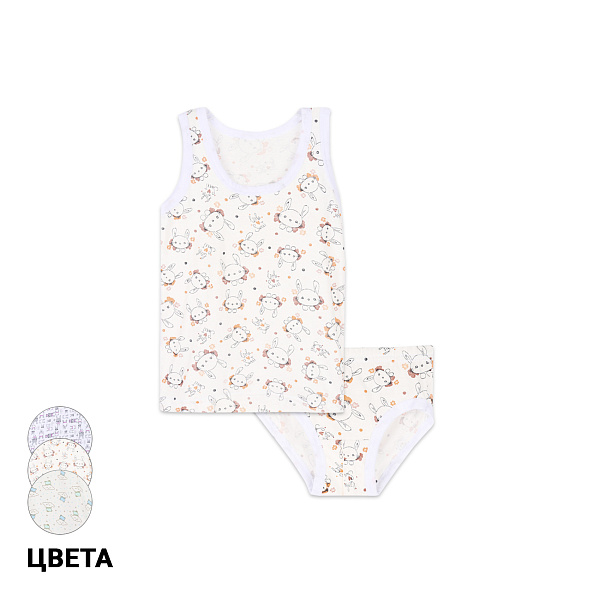 Комплект белья комфортен для домашнего использования. Этот набор выполнен из нежного хлопка, все швы едва заметны, а горловина и пройма окантованы мягкой тесьмой. Ткань хорошо пропускает воздух, она мягкая на ощупь и дарит комфорт в носке. Трусы выполнены в свободном крое, чтобы ничего не мешало ребенку в его желании активно узнавать мир. Изделие украшено мелким принтом из мультяшных зверюшек. В таком белье ваш ребенок будет чувствовать комфорт и свободу движений. Рекомендовано для детей дошкольного и школьного возраста.