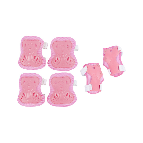 В состав комплекта входят попарно наколенники, налокотники и защитные накладки для запястья, которые крепятся на теле ребенка резинками.