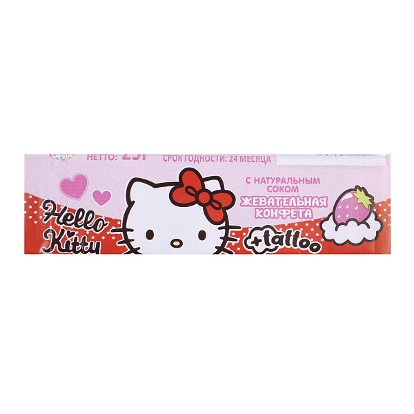 Конфета жевательная Hello Kitty с татуировкой и натуральным соком клубника 25г