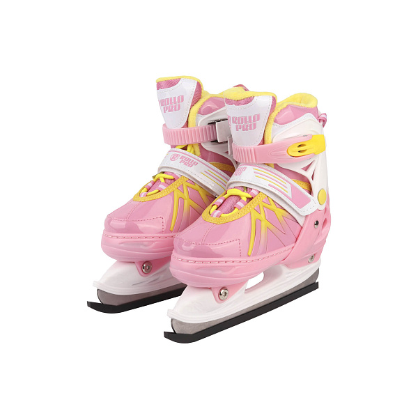 Коньки Rollo pro раздвижные с бело-желтыми вставками розовые