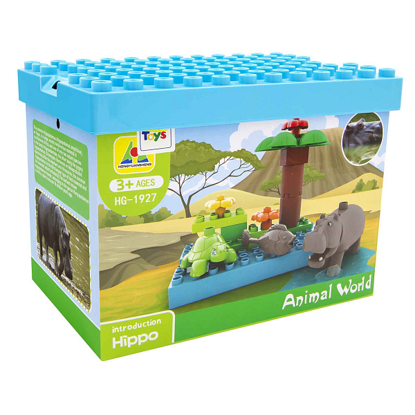 На прочной картонной коробке представлена инструкций и картинка с собранным блоком, а также рассказ про бегемота, чтобы в процессе игры ребенок узнавал новые и интересные факты из жизни животных. Товар подходит детям с 3 лет.