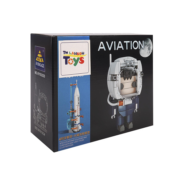 В набор входит 197 пластиковых цветных деталей, из которых собираются два предмета – космонавт и ракета. Фигурка космонавта дополнена скафандром, гермошлемом, а также исследовательской аппаратурой, закрепленной на снаряжении.