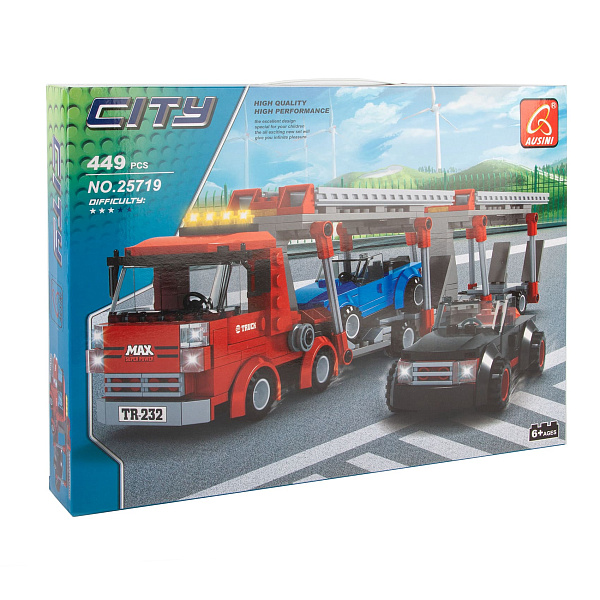 «Автовоз» — это комплект блочного конструктора, состоящий из 449 деталей различной формы, для сборки городского автомобильного транспорта. Увлекательный набор конструктора окунёт Вашего ребёнка в сюжетно-ролевую игру, где он сможет представить себя на месте водителя ярко-красного автовоза с прицепами, в которых размещены два спортивных кабриолета. Набор состоит из достаточно большого количества деталей, в связи с чем потребуется время, чтобы собрать финальную версию автомобиля, но тем занимательнее будет сам процесс сборки. В комплект также входят две фигурки человечков, которые внесут разнообразие в игру и сделают её гораздо интереснее.