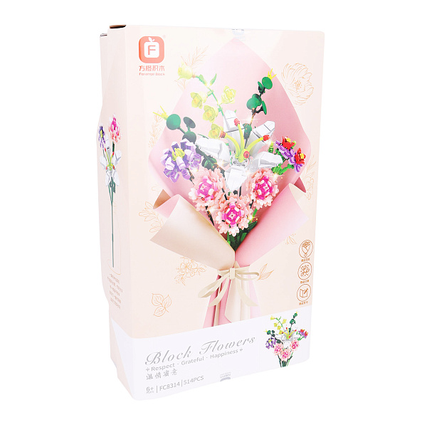 В комплект входят детали для сборки различных цветов, таких как лилия, гвоздика, ландыш и эвкалипт. Каждый цветок представлен с особым вниманием к деталям и легко узнаваем благодаря уникальной форме и цвету. Подсветка придает букету дополнительный шарм и визуальную привлекательность в вечернее время. Работает от батареек (не включены в комплект).