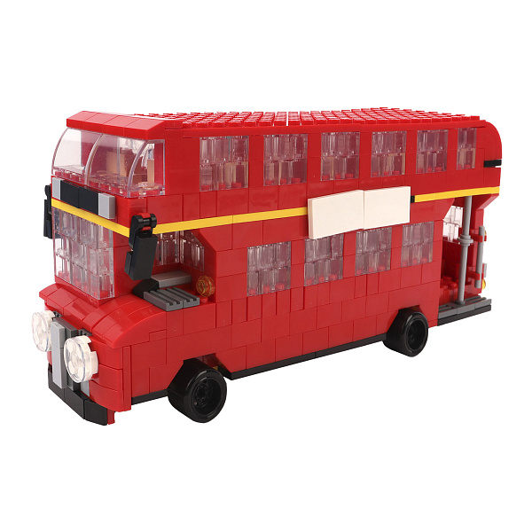 Блочный конструктор адресован детям с 6 лет, позволит внести разнообразие в домашний досуг. В красочной коробке ребенок найдет 1000 деталей разной конфигурации и наглядную инструкцию по сборке большого двухэтажного автобуса. При желании можно упростить задачу, потренироваться, собрав 6 миниатюрных машин. Готовые игрушки можно использовать по прямому назначению, реализовать разные игровые сюжеты.