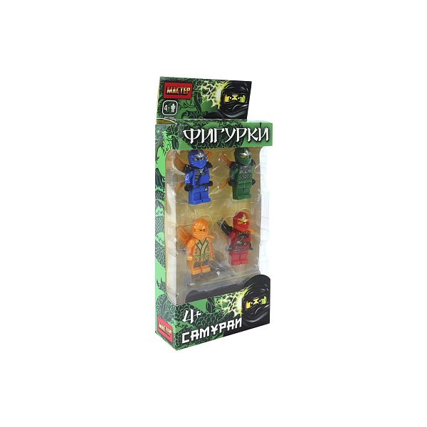 Конструктор «Самураи» состоит из фигурок, изготовленных в стиле популярных игровых наборов. В упаковке сразу четыре небольших воина, каждый выполнен в своем цвете. У игрушек за спиной есть пару самурайских мечей, которые можно дать им в руки. На головах надеты защитные повязки, которые скрывают лица самураев. На тело нанесен рисунок, отражающий уникальный стиль. Вместе с ними малыш сможет устраивать сражения, разыгрывать оригинальные приключенческие сюжеты и противостоять врагам.