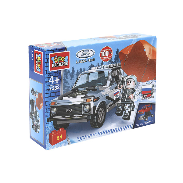 Конструктор Город мастеров LADA 4x4 с парашютистом 54дет