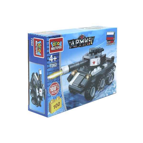 Маленьких поклонников игрушечной армейской техники порадует набор бренда «Город Мастеров». Конструктор из серии «Армия» поможет мальчику своими руками собрать модель танка. Детали комплекта легко крепятся между собой. Конструктор совместим с мировыми брендами. К набору прилагается подарок — российский флаг. Реалистичная модель военной спецтехники дополнит игровую коллекцию малыша и внесет разнообразие в игры.