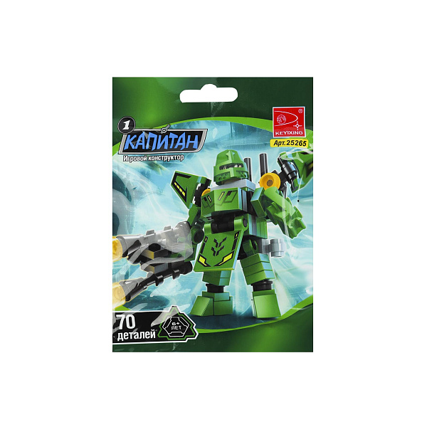 В конструктор входят 70 пластиковых деталей, соединяемых блоковым способом. Инструкция поможет правильно собрать крутого воина с фантастическим оружием и мощной броней. Получившаяся игрушка ничем не хуже изготовленных фабричным способом, ее можно использовать в сюжетных играх и разыгрывать космические битвы.