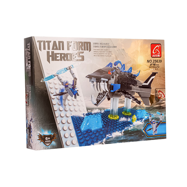 Titan Form Heroes — это набор блочного конструктора, состоящий из 276 красочных деталей различных форм, для сборки и последующей сюжетной игры с фантастическим роботом. Увлекательный набор конструктора позволит Вашему ребёнку собрать космического киборга-акулу с подвижными конечностями и оружием в виде устрашающих клыков. В наборе имеются не только стандартные блоки для конструирования робота, но также фигурка вооружённого летающего бойца, которая привнесёт разнообразие в игру и сделает её интереснее. Яркое оформление коробки не оставит ни одного ребёнка равнодушным, в связи с чем конструктор послужит превосходным подарком на любой праздник.