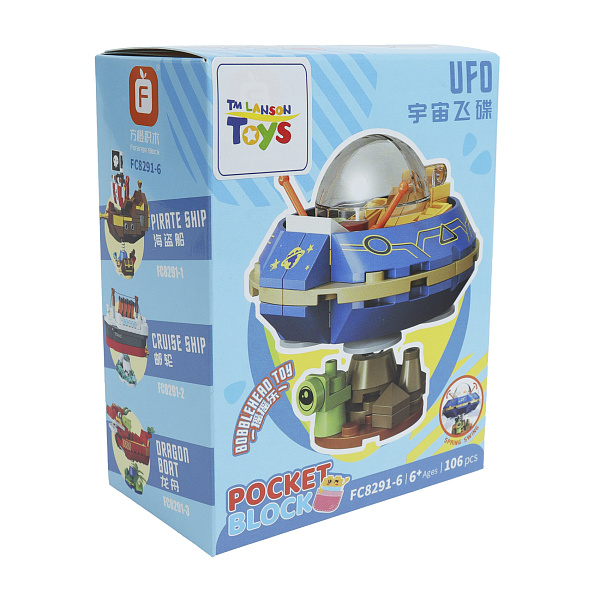 Тематический конструктор из блоков будет интересен детям старше 6 лет. В коллекцию входит 6 уникальных моделей воздушного и космического транспорта. Пошаговая инструкция позволит юному любителю техники самостоятельно справиться со сборкой игрушки из разноцветных элементов. С готовым изделием можно устроить увлекательную игру. В основании корабля предусмотрена пружинка, обеспечивающая интересные колебания.