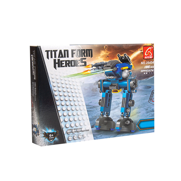 Titan Form Heroes — это набор блочного конструктора, состоящий из 186 красочных деталей различных форм, для сборки и последующей сюжетной игры с фантастическим роботом. Увлекательный набор конструктора позволит Вашему мальчугану собрать космического киборга с подвижными конечностями и оружием разрушительной мощности. В наборе имеются не только стандартные блоки для конструирования робота, но также фигурка космического солдата, которая привнесёт разнообразие в игру и сделает её интереснее. Яркое оформление коробки не оставит ни одного ребёнка равнодушным, в связи с чем конструктор послужит превосходным подарком на любой праздник.