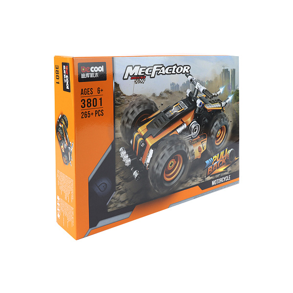 Оригинальный конструктор Квадроцикл с инерционной системой Pull Back. Чтобы получить готовое мощное и быстрое транспортное средство, ребенку нужно по инструкции собрать 266 деталей. В комплекте есть подробная поэтапная инструкция, которая поможет не ошибиться в процессе. Машину не только увлекательно собирать, не менее интересно будет с ней играть, устраивая дома настоящую гоночную трассу. Достаточно поставить квадроцикл на ровную поверхность и аккуратно потянуть назад, а затем отпустить. Автомобиль в ту же секунду помчится в обозначенном направлении.