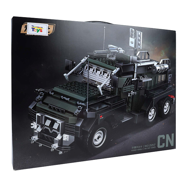 Конструктор Lanson Toys Бронемашина состоит из 867 деталей. Готовая модель представляет собой военную машину. У машины шесть колес, массивный кузов и башня на крыше. На борту – декоративные панели, решетки и антенны. Двери, капот и багажник открываются и закрываются.