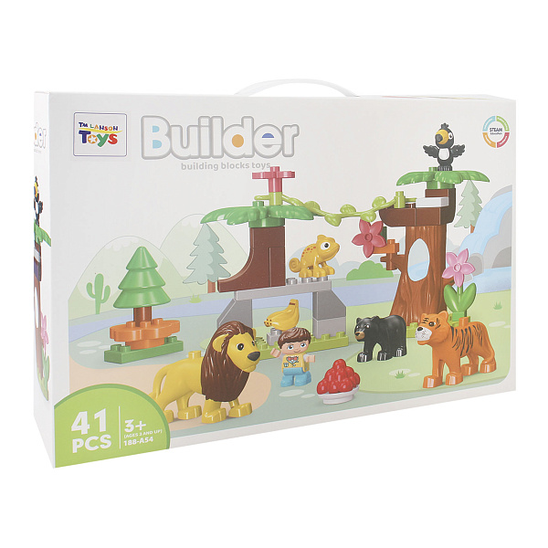 Конструктор Lanson Toys «Дикие джунгли» предлагает детям увлекательное путешествие в мир тропических лесов и экзотических животных. Этот набор станет первым шагом в освоении азов сборки и конструирования. Конструктор состоит из 41 детали. Крупные и яркие элементы позволяют легко собирать и разбирать модели, развивая мелкую моторику и воображение.