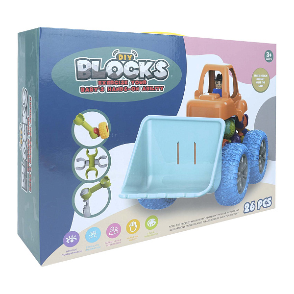 Многовариативный конструктор «Бульдозер» с подвижными соединениями состоит из 26 деталей и предназначен для маленьких строителей. В набор входят яркие и разнообразные детали, которые легко соединяются между собой с помощью подвижных соединений, что позволяет менять конфигурацию, создавать различные модели и придумывать новые конструкции.
