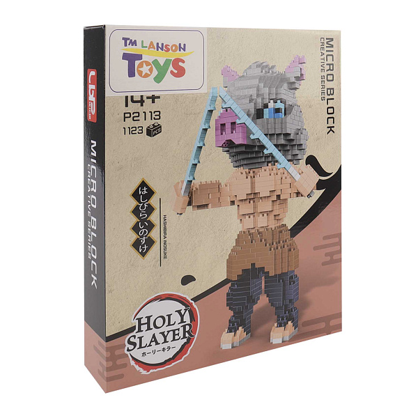 Конструктор для фанатов аниме состоит из 1123 деталей, из которых ребенок сможет собрать фигурку Иноскэ Хасибира из аниме «Клинок, рассекающий демонов». Дизайн включает узнаваемую маску кабана и мечи.
