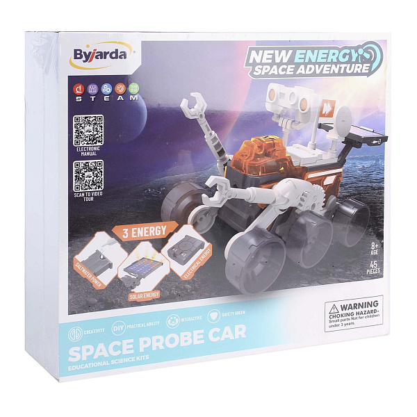 Обучающий электронный конструктор «Космический планетоход» предлагает уникальную возможность детям старше 8 лет узнать о современных альтернативных источниках энергии. Уникальная игрушка работает от обычных батареек, солнечных батарей и энергии соленой воды, что позволяет не только развивать инженерные навыки, но и открывать интересный мир энергетики.