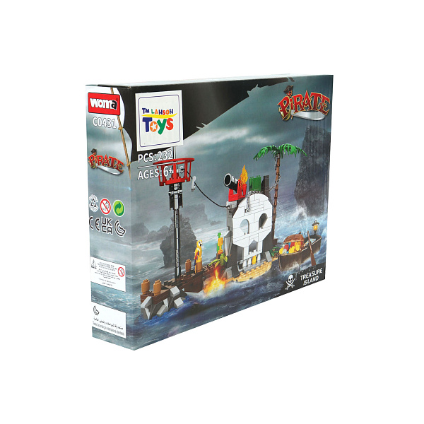 Конструктор «Остров пиратов» порадует детей, которые любят играть в пиратов и готовы к захватывающим приключениям. Ребенок сможет построить пиратскую крепость с подвижной пушкой, попугаем, лодкой с веслами, черепом, сундуком, картой острова и другими атрибутами жизни пиратов. Набор поможет придумать немало идей для увлекательных сюжетных игр и пополнит игровую коллекцию малыша.