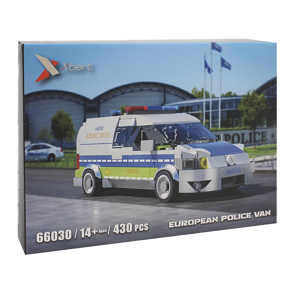 Конструктор «Xbert Полицейская машина» — это детализированный набор из 430 деталей, с помощью которого можно собрать реалистичный европейский полицейский фургон. Модель выполнена в характерной цветовой гамме с синими, белыми и зелёными элементами, дополнена световыми панелями и надписями, что придаёт ей аутентичный вид.