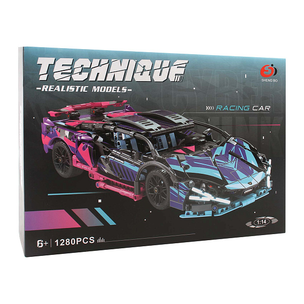 Конструктор RACING CAR КИБЕРПАНК S7604 — это набор из 1280 деталей, из которых можно собрать эффектную модель гоночного автомобиля в стиле киберпанк. Машина выполнена в ярком сочетании чёрного, синего и пурпурного цветов с необычными графическими элементами, что придаёт ей футуристический и динамичный вид. Модель обладает детализированным интерьером, проработанным капотом двигателя и оригинальными дисками на колёсах.
