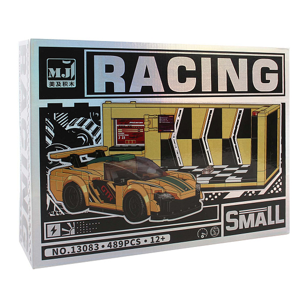 Конструктор СПОРТКАР RACING 13083 + ГАРАЖ – это набор из 489 деталей, который содержит спортивный автомобиль в стильном жёлто-оранжевом исполнении с чёрными и зелёными акцентами, а также современный гараж с дизайнерским оформлением. Модель спорткара выполнена с чёткими линиями и аэродинамическим спойлером, что придаёт ей динамичный и привлекательный внешний вид. Гараж дополнен высокотехнологичной панелью управления и просторным пространством для хранения автомобиля.