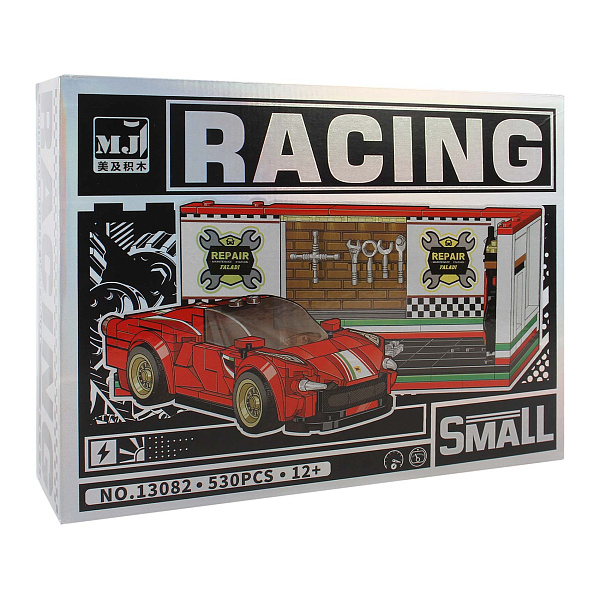 Конструктор СПОРТКАР RACING 13082 и ГАРАЖ – это набор из 530 деталей, включающий в себя красочный спортивный автомобиль и гараж с инструментами. Модель спорткара отличается стильным дизайном с ярко-красным корпусом и золотистыми колёсами, а гараж дополнен реалистичными аксессуарами, такими как инструменты и рабочие элементы, создающими атмосферу настоящей автомастерской.