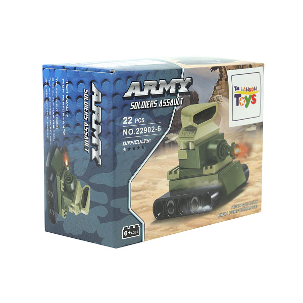 Военные игрушки порадуют юных любителей военной техники. Особенно интересно, когда такую игрушку можно собрать самостоятельно. Такую возможность дает ребенку конструктор «Танк» из серии конструкторов «Армия». В наборе 22 детали камуфляжной расцветки, гусеницы черные. Все элементы прочно соединяются между собой. Собранная боевая машина станет частью коллекции игрушечного военного транспорта. Материал изготовления – пластмасса.