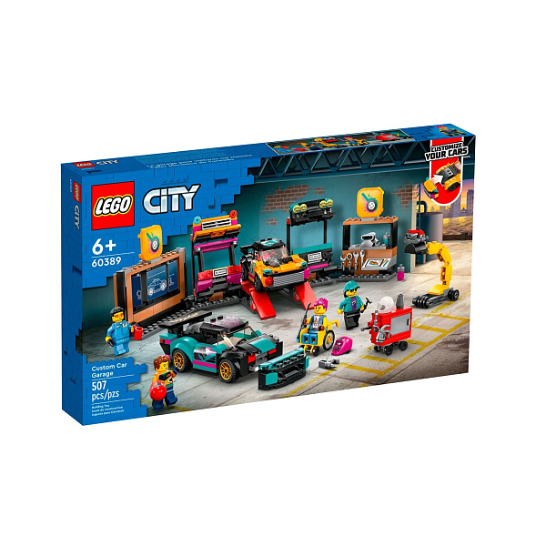 Для интересной игры в комплект входят минифигурки двух механиков и двух водителей, разные аксессуары, а также 507 деталей для сборки автомобильной мастерской с конфигурируемой стеной, пандусами, подъемником и двух адаптируемых автомобилей, дизайн которых можно менять, выбирая из ряда двигателей, модульных передних и задних секций с различными фарами, бамперами и спойлерами.