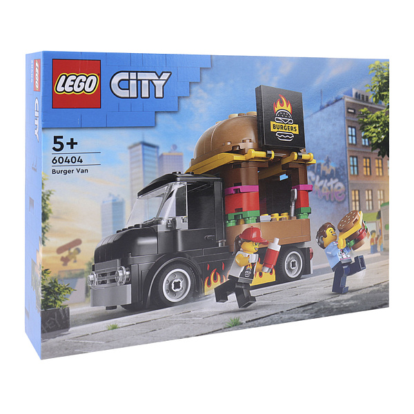 LEGO City «Грузовик-бургер» включает 194 детали и представляет собой модель яркого грузовика в стиле уличного фастфуда. Основные цвета конструкции – желтый и коричневый. Грузовик оснащен большими колесами, а также детализированным интерьером и экстерьером: открывающейся боковой стенкой, позволяющей просматривать кухню, и огромным бургером наверху. В набор входят две минифигурки продавца и покупателя.