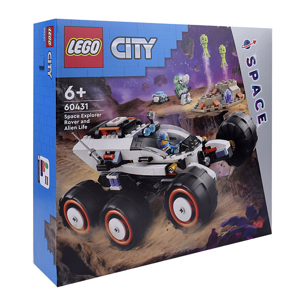 Конструктор LEGO City «Марсоход» включает 311 деталей, идеально подходящих для будущих исследователей космоса. Модель выполнена в белых, черных и серых тонах с яркими красными и синими акцентами, придающими ей футуристический вид. У марсохода большие рельефные колеса, кабина с открывающимся люком и манипулятор для исследования поверхности планеты.