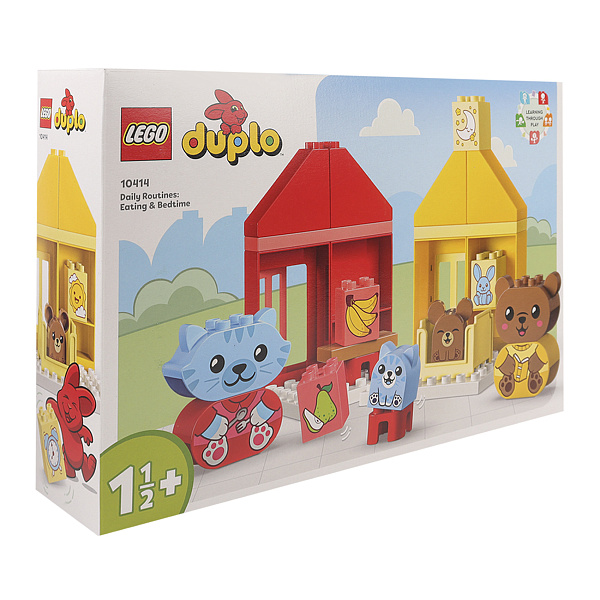 Конструктор Lego Duplo «Распорядок дня: еда и время сна» подходит для детей от 18 месяцев и старше. В набор входят четыре милых фигурки животных, которые помогут малышам узнать о важности повседневных занятий и эмоциях. В комплекте есть два дома (красный и желтый), фигурки медвежонка, котенка, щенка и фигурка ребенка медвежонка, которые могут быть грустными или счастливыми.