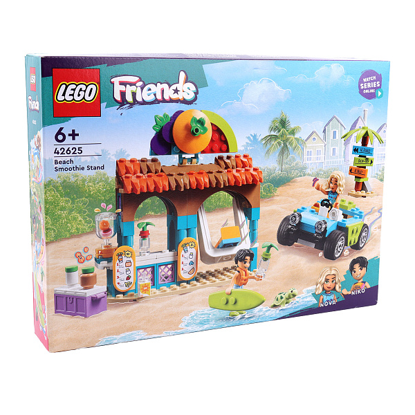 Конструктор LEGO FRIENDS «Ларек со смузи на пляже» — идеальный набор для юных любителей веселых историй и пляжных приключений. Модель представляет собой красочный ларек с яркой крышей, декоративными фруктами и прилавком, на котором размещены блендеры и фруктовые ингредиенты. Комплект включает две мини-фигурки, шезлонг, авто, серфинг-доску и множество мелких аксессуаров для создания реалистичной атмосферы.