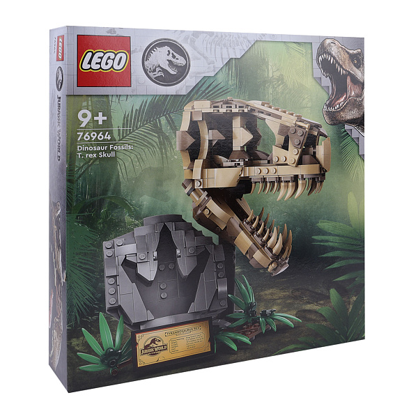 LEGO Jurassic World «Череп тираннозавра» состоит из 577 деталей и позволяет создать детализированную модель черепа знаменитого динозавра. Конструкция выполнена в аутентичных цветах – различных оттенках коричневого и бежевого, что придает ей реалистичный вид. Череп установлен на прочную подставку, украшенную табличкой с информацией о тираннозавре. Специфические детали, такие как зубы и челюсть, придают модели максимальную схожесть с настоящим экспонатом.