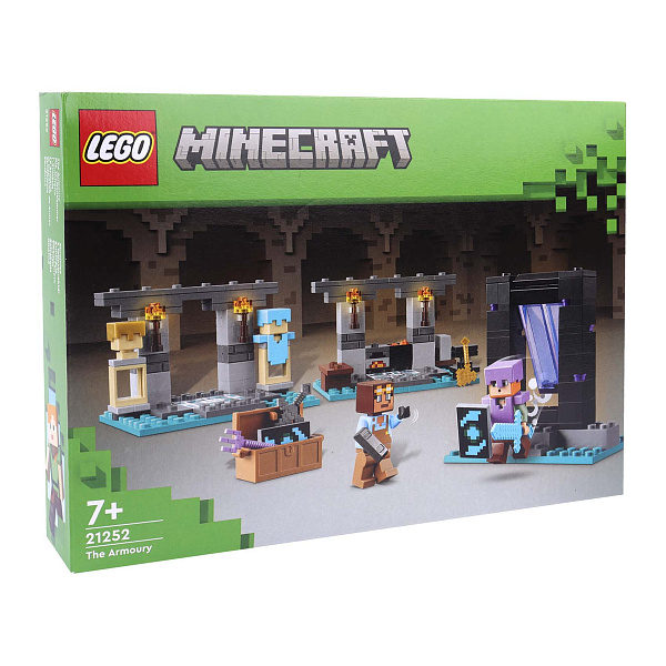 Конструктор LEGO Minecraft «Оружейная палата» представляет собой увлекательный набор для любителей Minecraft. В комплекте две мини-фигурки — герои Алекс и Бронник. Оба персонажа оснащены разнообразным вооружением, включая алмазный меч, золотой топор и зачарованный трезубец.
