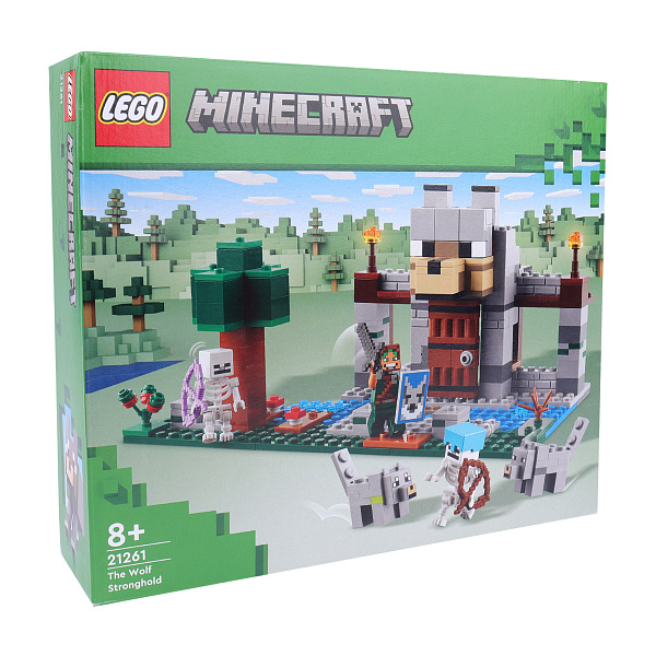 LEGO Minecraft «Волчья крепость» понравится маленьким фанатам пиксельной игры. Комплект предназначен для детей от 8 лет. В наборе 312 деталей, из которых можно создать базу дрессировщика волков. Вход на базу украшен гигантской головой волка, которая умеет изменять выражение с дружелюбного на сердитое. Внутри крепости находятся верстак, печь, наковальня и кузнечный стол.