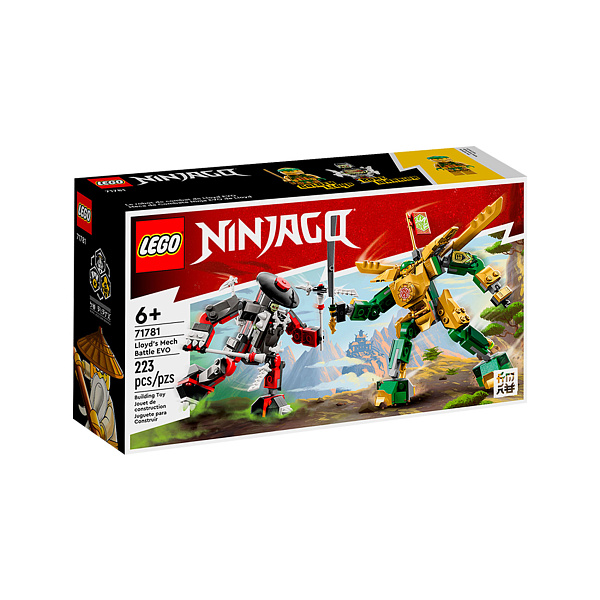 Устраивайте захватывающие баталии с набором Lego Ninjago «Битва робота Ллойда». В сражении сойдутся двое грозных персонажей с крутым оружием – Золотой Ллойд, имеющий золотые доспехи и крылья, и Костяной Воин, оснащенный грозным оружием и шляпой, которую можно использовать как щит. Победиель будет награжден знаменем Стойкости.