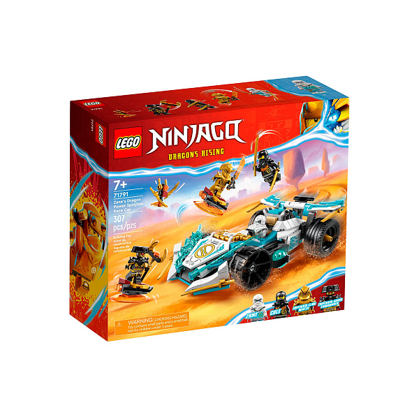 Поклонникам ниндзя в возрасте от 7 лет и старше понравится разыгрывать сцены из телесериала «Ниндзяго: Восстание драконов», используя невиданную ранее функцию вращения гоночного автомобиля из набора Zane’s Dragon Power Spinjitzu Race Car. Когда они нажимают на спойлер сзади, задние колеса автомобиля поднимаются, и он движется на элементах силы дракона, чтобы ниндзя могли сразиться со злыми охотниками на драконов.