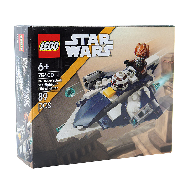 Конструктор LEGO Star Wars «Микро-истребитель Пло Куна «Звездный истребитель джедаев» включает 89 деталей. В набор входит фигурка Пло Куна с синим световым мечом и дроид R7-D4. Модель выполнена в фирменных цветах и имеет кабину для фигурки, а также два шипомета. Игрушка создана по образу истребителя из мультсериала «Звездные войны: Войны клонов».