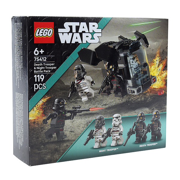 Конструктор LEGO Star Wars «Боевой набор штурмовиков смерти и ночных штурмовиков» состоит из 119 деталей. С помощью набора можно собрать десантный корабль с кабинкой и местом для четырех фигурок. Кабина оснащена съемным навесом, а сзади расположены два шутера. В комплект входят две фигурки штурмовиков смерти и две фигурки ночных штурмовиков. Каждая фигурка имеет шлем и бластер, который можно закрепить рядом с ней на корабле.