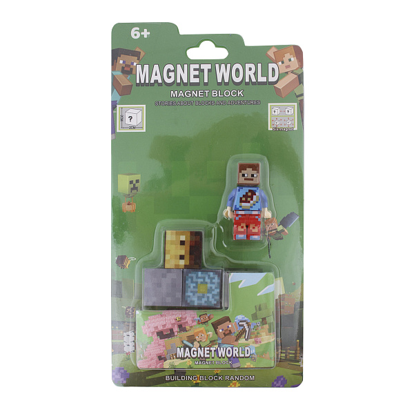 Магнитный конструктор «Magnet World: Рудник» состоит из четырех деталей, выполненных в стиле популярной игры. В набор входят три квадратных блока с магнитами внутри и мини-фигурка с подвижными руками и ногами.