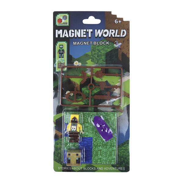 Конструктор магнитный «Magnet World: Житель, скейт и пчела» от Lanson Toys — динамичный набор в пиксельном стиле для детей от 6 лет. Включает фигурку жителя (персонажа в жёлтой куртке и коричневых штанах), фиолетовый скейтборд и элементы ландшафта — блоки с травой, водой и деревом.