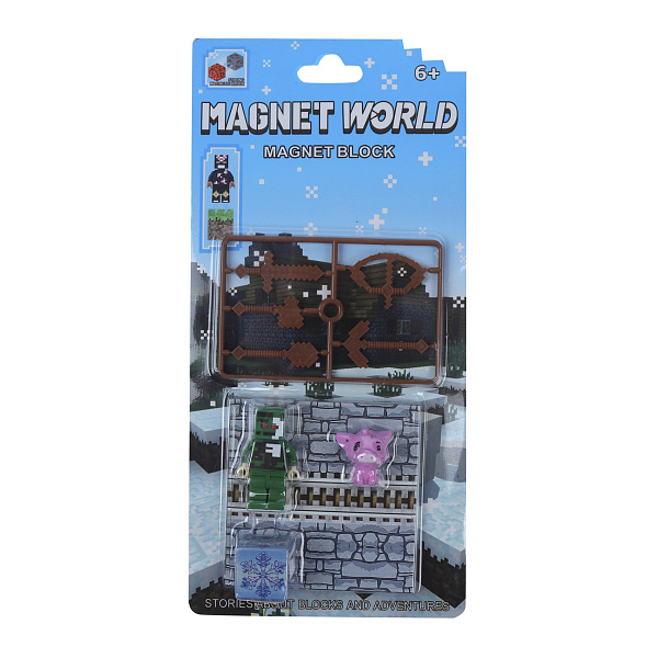 Конструктор магнитный «Magnet World: Житель, свинка и снежинка» от Lanson Toys — увлекательный набор в пиксельном стиле для детей от 6 лет. Включает фигурку жителя (персонажа в зелёной одежде), милую розовую свинку, блок со снежинкой и элементы ландшафта — каменную стену, снег и оружие.